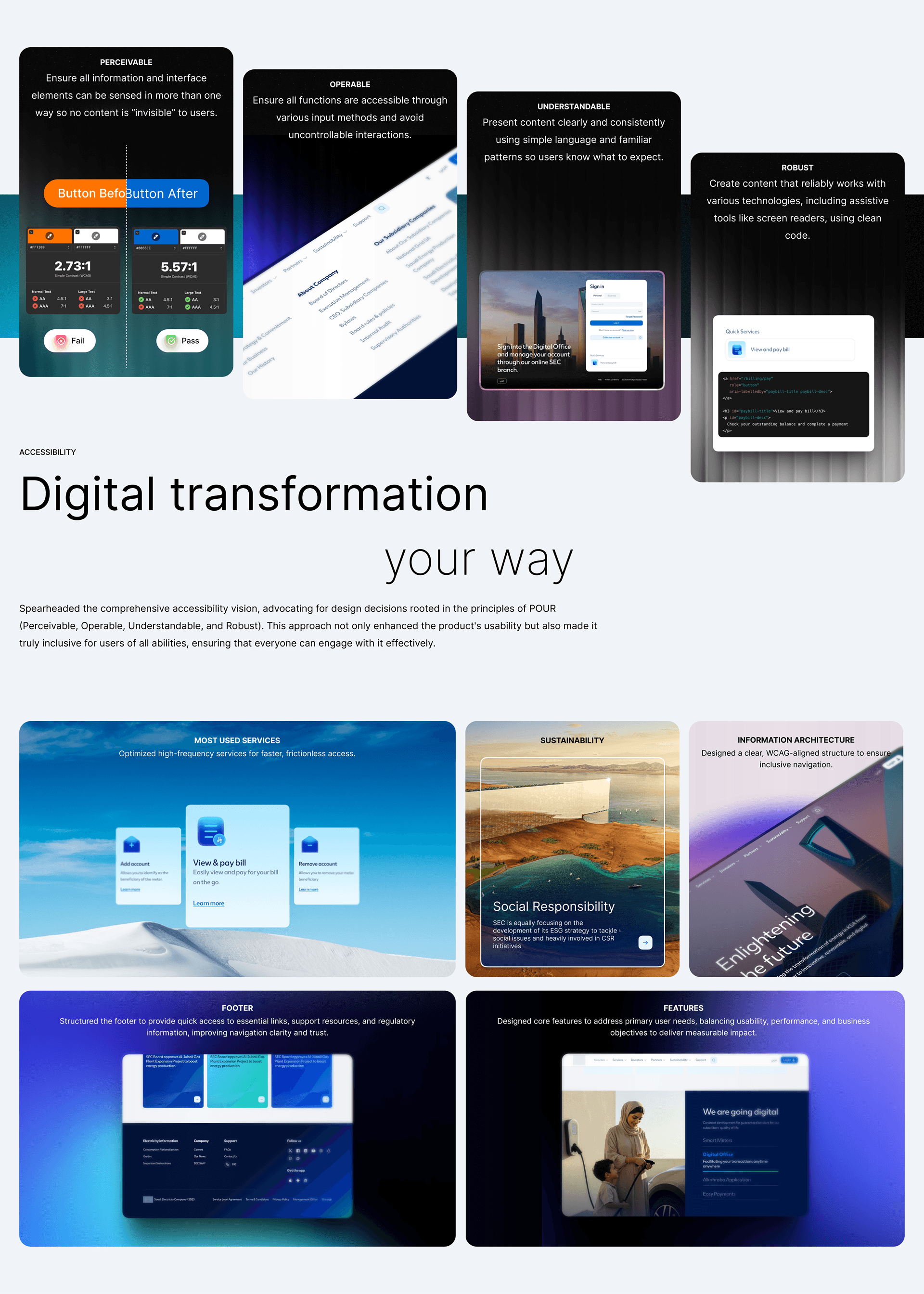 Reimagined Saudi Energy’s digital ecosystem across all touchpoints - B2B, B2C, and B2E. The initiative focused on creating a unified, intuitive experience that aligns with the nation’s vision and Saudi Energy’s brand identity.